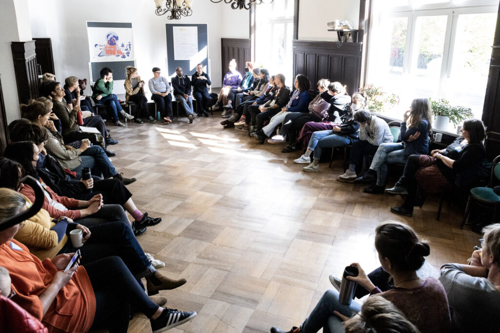 Die Resonanz war sehr groß. Es gingen knapp 50 Anmeldungen von freiberuflichen Bildungsreferent*innen, Supervisor*innen und Berater*innen sowie von Mitarbeiter*innen von NGOs, Universitäten und Stiftungen aus verschiedenen Teilen Sachsens und weit darüber hinaus ein. Ihre Hintergründe reichten vom systemischen Ansatz, über traumasensible Arbeitsweisen, theaterpädagogische Ausbildungen hin zur Arbeit mit Ansätzen wie Betzavta, Gewaltfreier Kommunikation und Achtsamkeit.